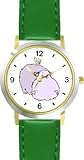 More Detail For Hippopotamus Cartoon African Animal WATCHBUDDY DELUXE TWO TONE THEME WATCH Arabic Numbers Green Leather Strap Children s Size Small Boy s Size Girl s Size