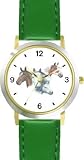 More Detail For Horse Collage Brown Paint and White Mare and Foal JP Horse WATCHBUDDY DELUXE TWO TONE THEME WATCH Arabic Numbers Green Leather Strap Children s Size Small Boy s Size Girl s Size