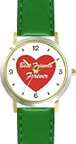 More Detail For Red Heart Best Friends Forever Love Friendship Theme WATCHBUDDY DELUXE TWO TONE THEME WATCH Arabic Numbers Green Leather Strap Children s Size Small Boy s Size Girl s Size