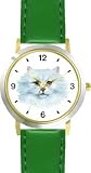 More Detail For White Persian Cat JP WATCHBUDDY DELUXE TWO TONE THEME WATCH Arabic Numbers Green Leather Strap Children s Size Small Boy s Size Girl s Size