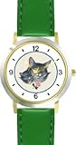 More Detail For Gray Tabby Cat Mom and Kitten with Rose Cat JP WATCHBUDDY DELUXE TWO TONE THEME WATCH Arabic Numbers Green Leather Strap Children s Size Small Boy s Size Girl s Size